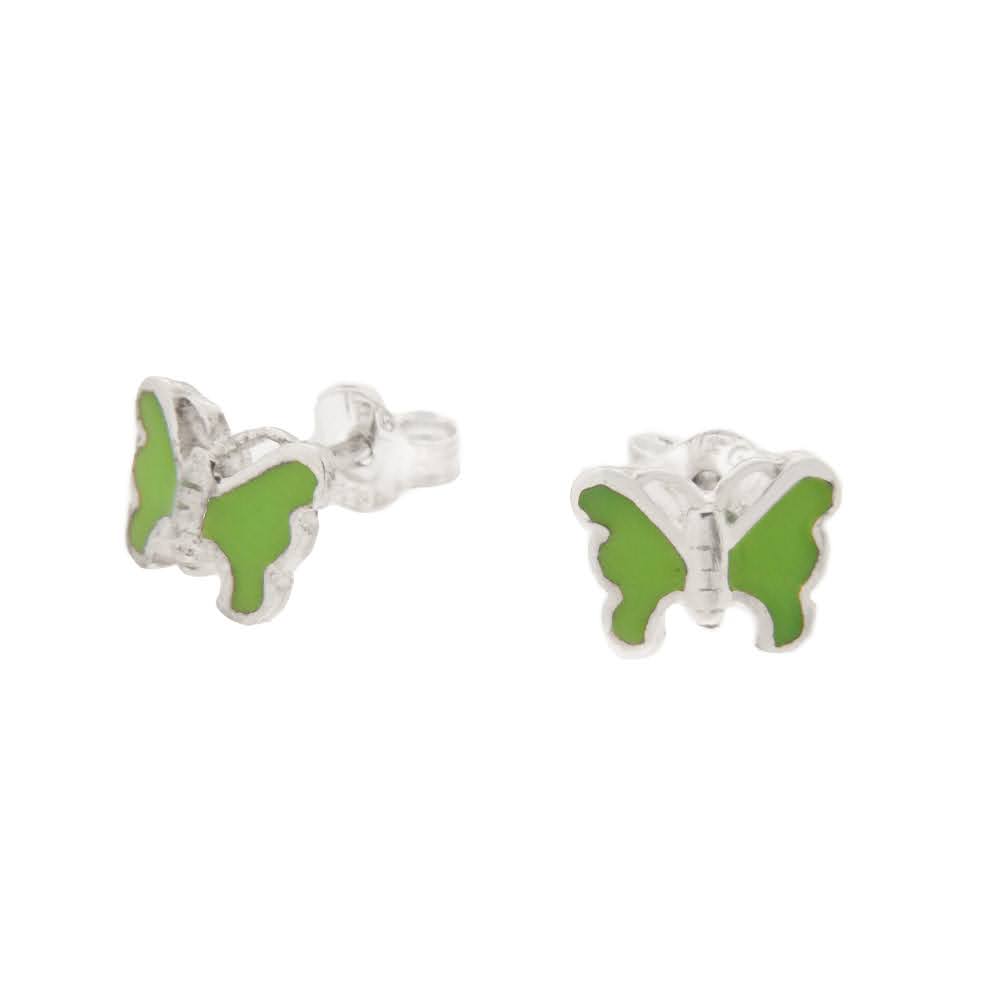 Ørepynt sølv grønn sommerfugl 7x9mm