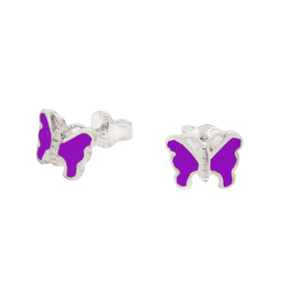 Ørepynt sølv lilla sommerfugl 7x9mm