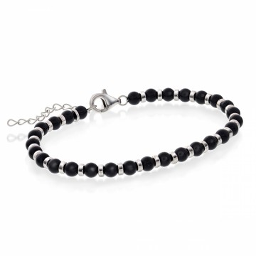 A. Nordlie Sølv armbånd sort agat 4mm 17+3cm