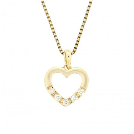 Nydelig alliansehjerte i 14K/585 gull, med diamanter. Diamantene måler 5x0,02ct, og er i kvaliteten TW/SI.