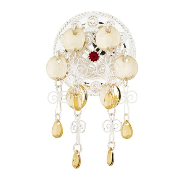 Barnesølje hvitt/forgylt sølv med røde steiner
