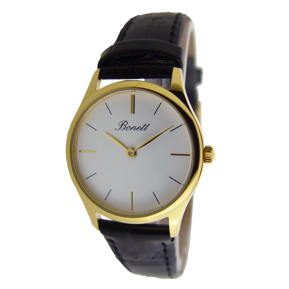 Bonett dameur 3ATM 30mm double hvit skive & svart skinnreim
