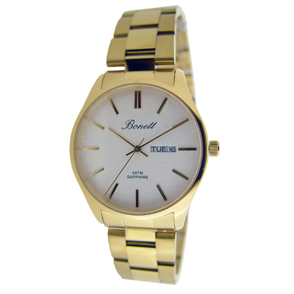 Bonett herreur 5ATM 38mm stål/double med safir hvit skive & lenke