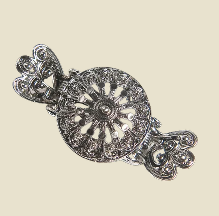 Veskestøl i oksidert sølv. 26,5mm åpning. Størrelse: 3x3cm