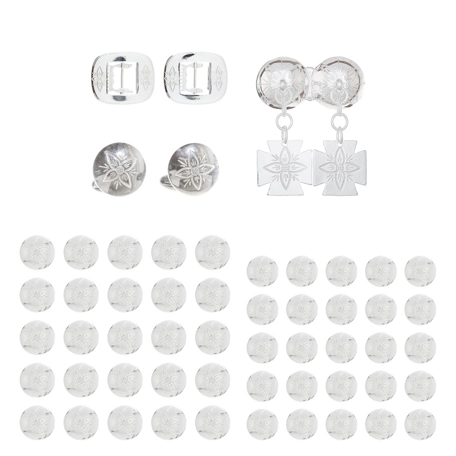 Komplett sett med bunadsølv til Rogaland herrebunad. Sølvet er i hvitt gravert sølv.