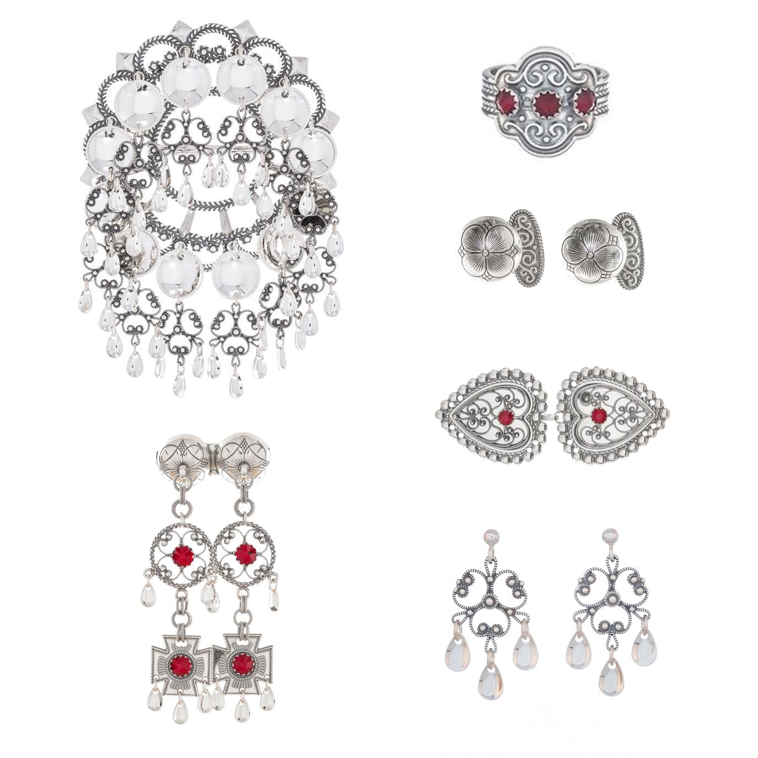 Bunadssett Sunnmøre oksidert sølv med røde steiner