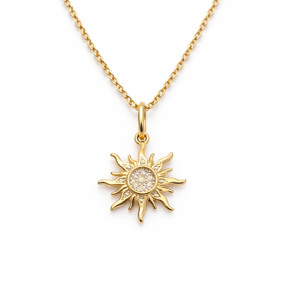 CAIA forgylt sølv halssmykke 14mm sol med blanke zirconer 42+5cm