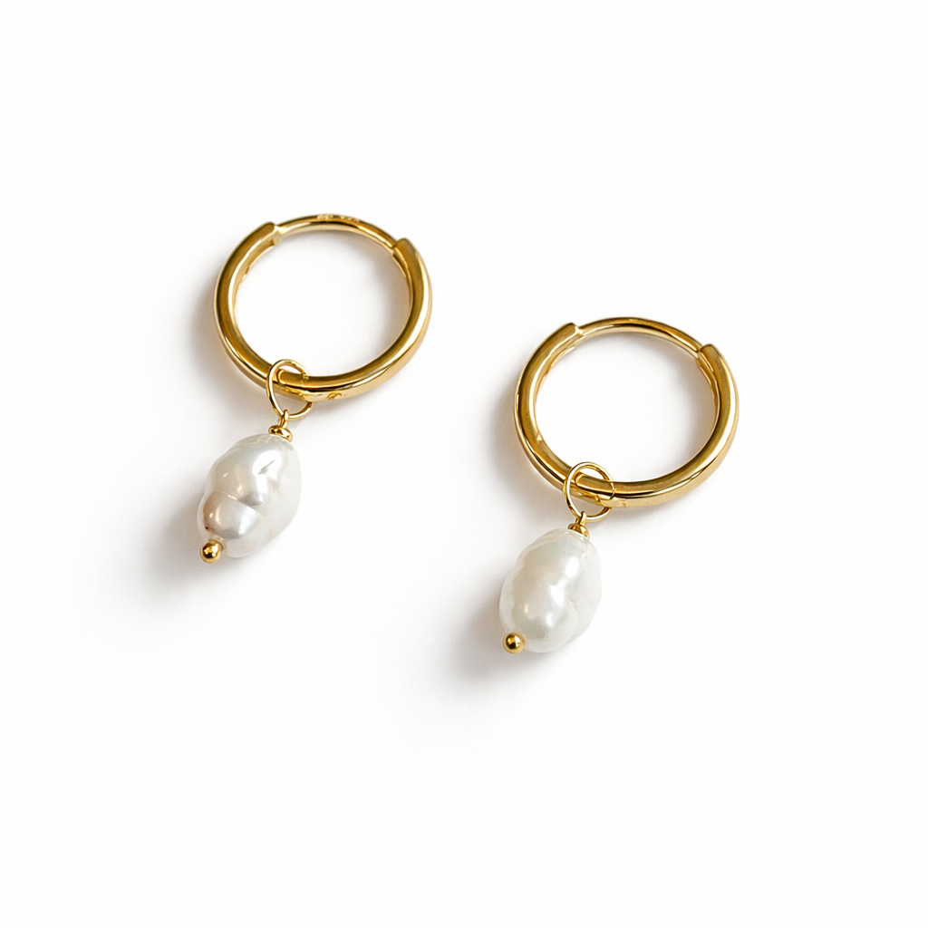 Vakre øreringer i 9K/375 gull, med hvite ferskvannsperler.