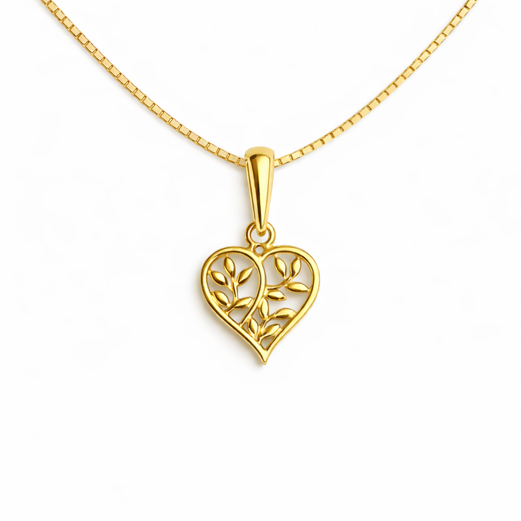Vakkert anheng i 9K/375 gull, med åpent hjerte og livets tre.