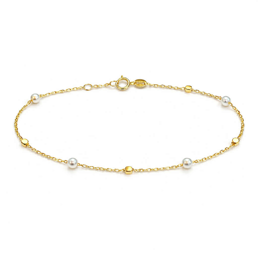 Vakkert armbånd i 9K/375 gull, med hvite perler.