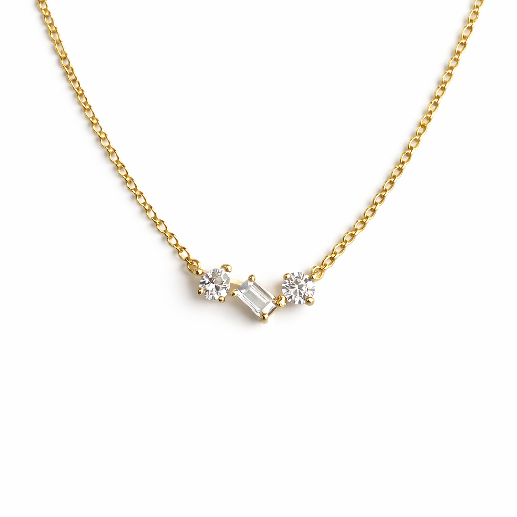 Vakkert halssmykke i 9K/375 gull, med blanke cubic zirconia.