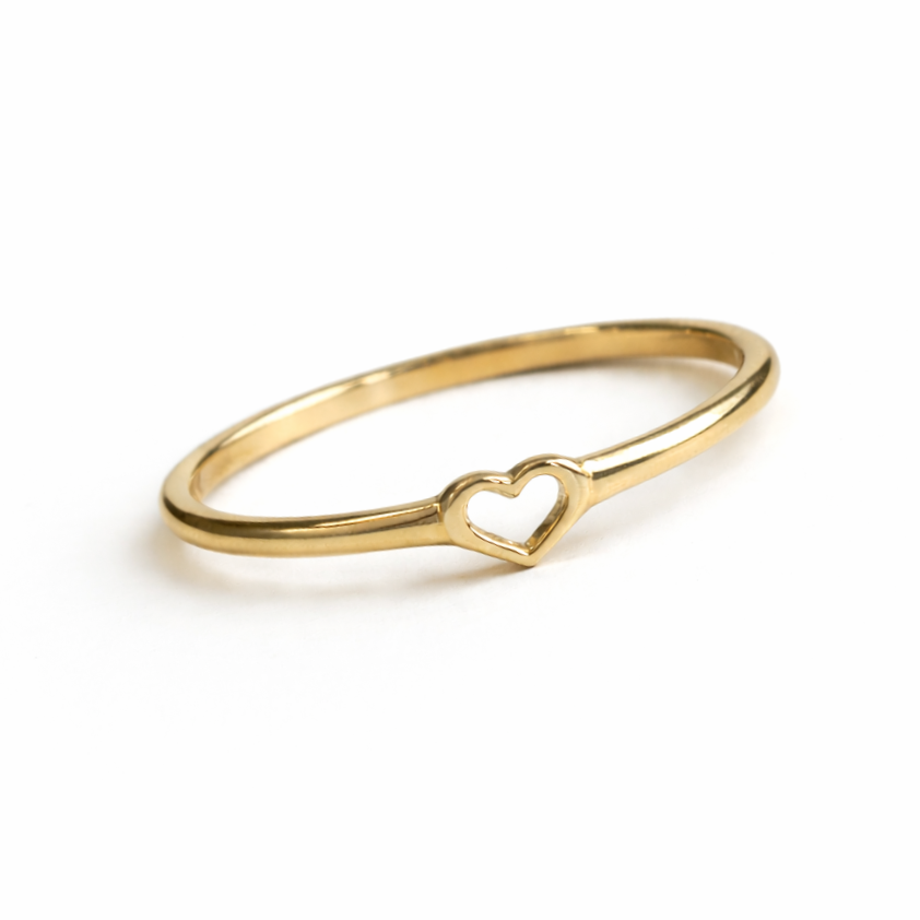 Trendy ring i 9K/375 gull, med åpent hjerte.