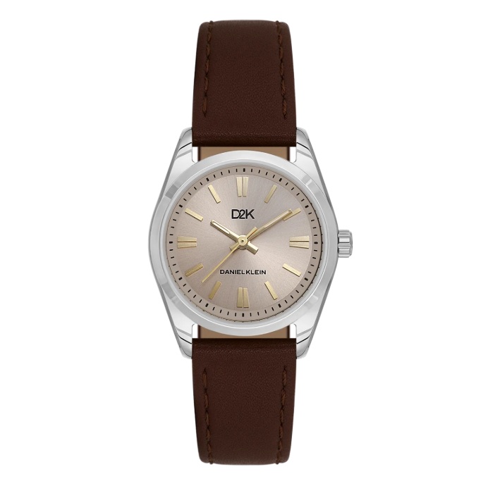 Daniel Klein D2K dameur i stål med champagne skive og brun skinn reim 3 ATM 30mm