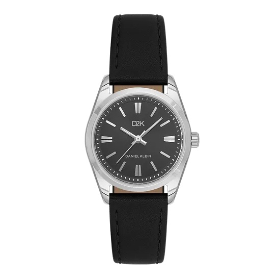 Daniel Klein D2K dameur i stål med grå skive og svart skinn reim 3 ATM 30mm