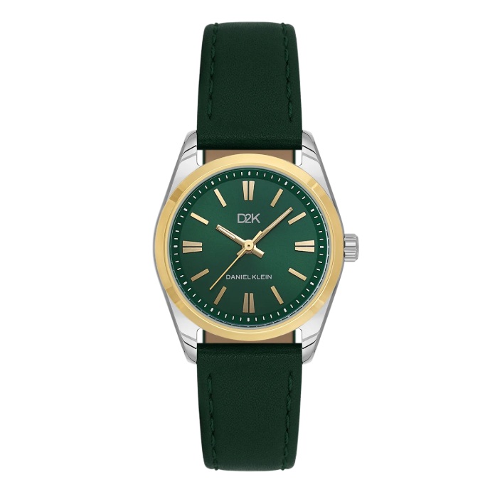 Daniel Klein D2K dameur i stål med grønn skive og svart skinn reim 3 ATM 30mm