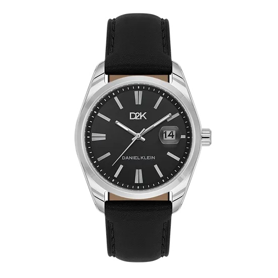 Daniel Klein D2K herreur i stål med svart skive & svart skinn reim 3 ATM 42mm