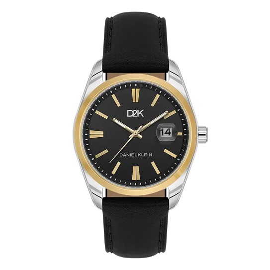 Daniel Klein D2K herreur i tofarget stål med svart skive & svart skinn reim 3 ATM 42mm