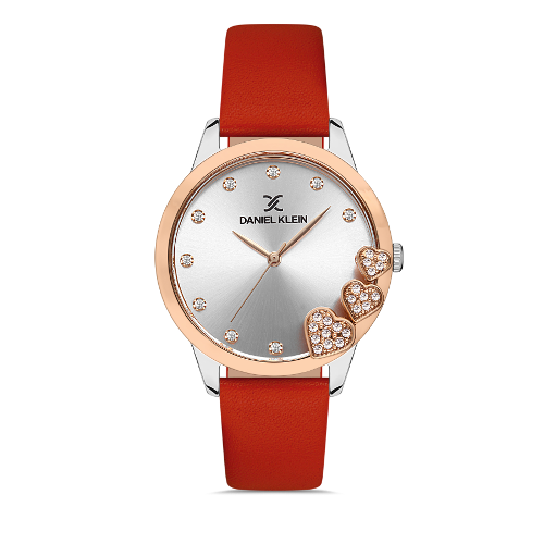 Daniel Klein dameur 3ATM 35mm sølvfarget skive rød skinn reim