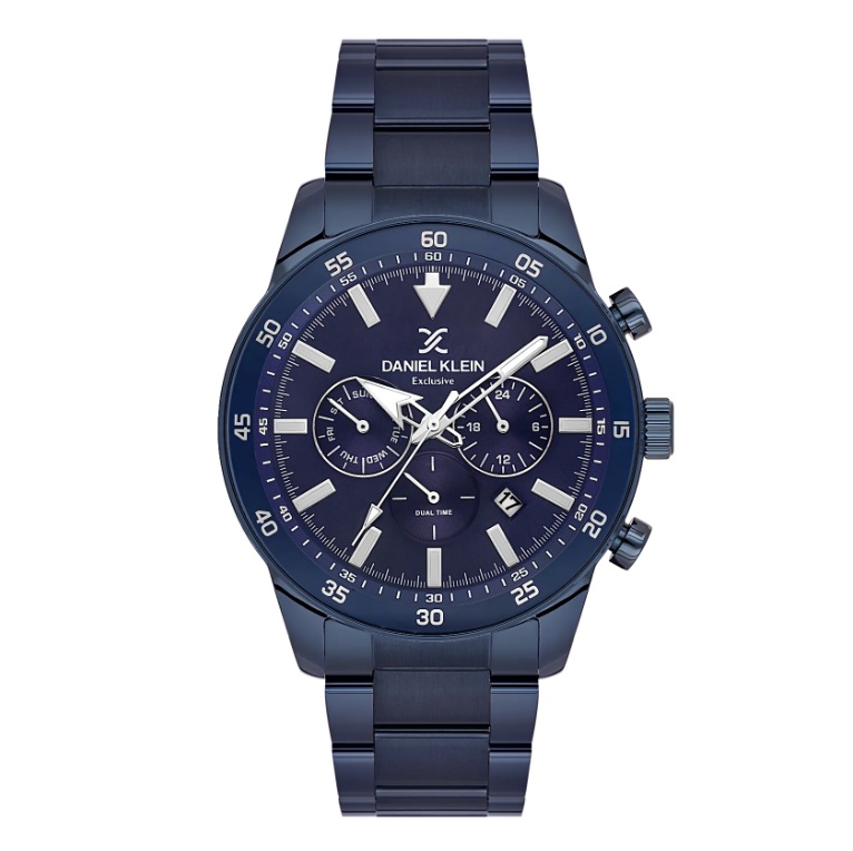 Daniel Klein Exclusive herreur i stål med blå lenke & blå skive 5 ATM 44mm