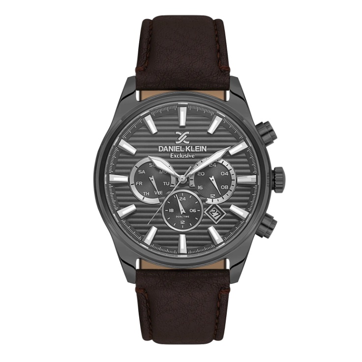 Daniel Klein Exclusive herreur i stål med grå skive & brun skinn reim 5 ATM 44mm
