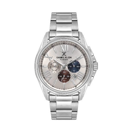 Daniel Klein Exclusive herreur i stål med grå skive og romertall 5 ATM 44mm