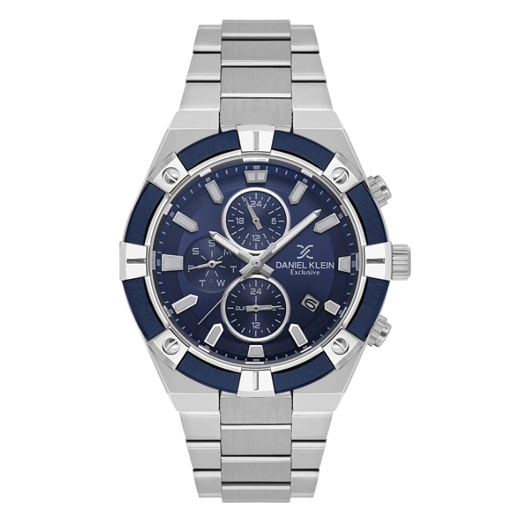 Daniel Klein Exclusive herreur i stål med lenke & blå skive 5 ATM 45mm