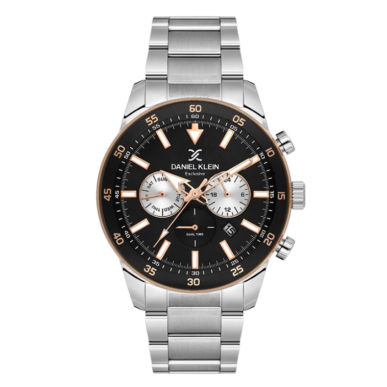 Daniel Klein Exclusive herreur i tofarget stål med lenke & svart skive 5 ATM 44mm