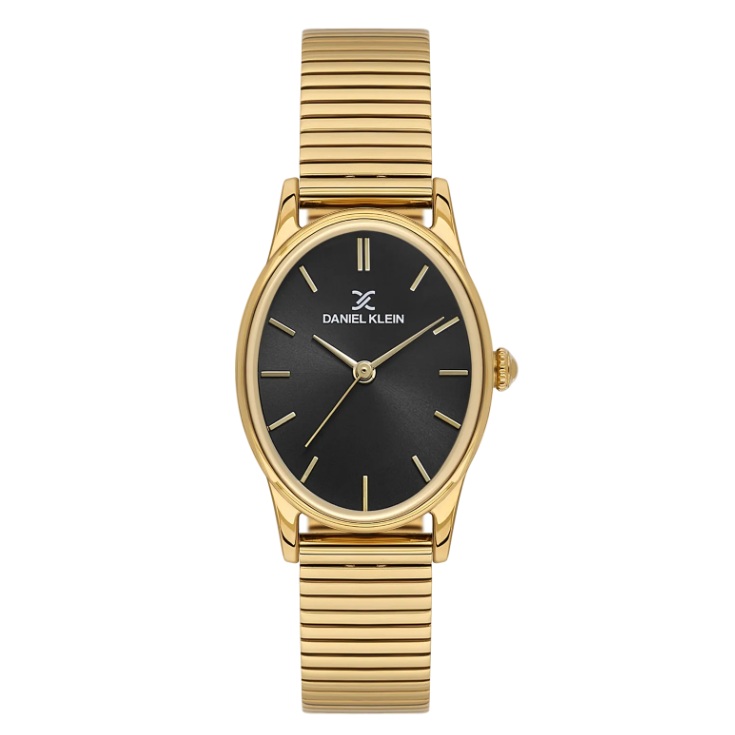 Daniel Klein Premium dameur i forgylt stål med svart skive, lenke, 3 ATM 23mm