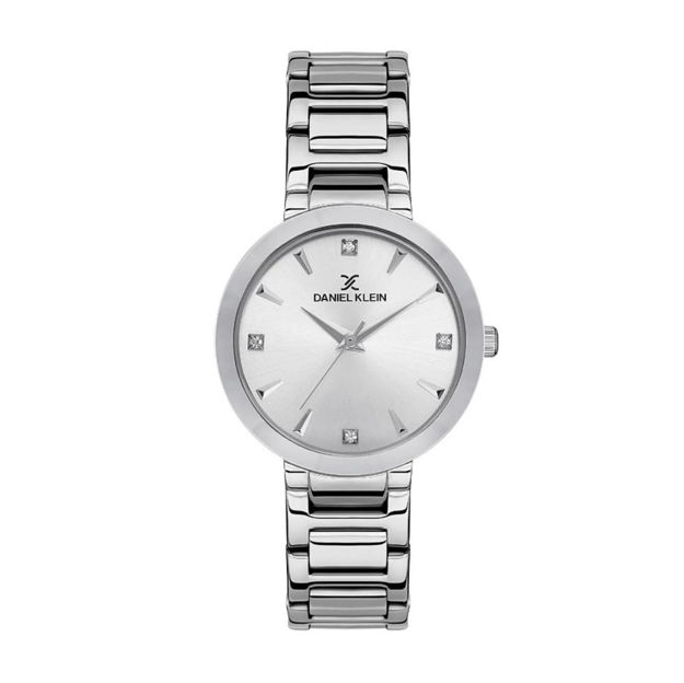 Daniel Klein Premium dameur i stål med sølvfarget skive og lenke