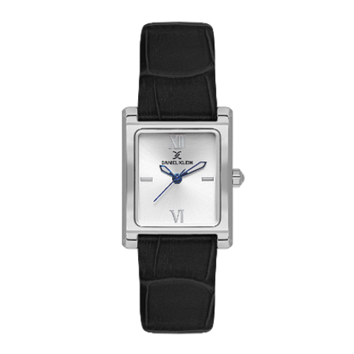 Daniel Klein Premium dameur i stål med svart skinn reim og sølvfarget skive 3 ATM 23mm