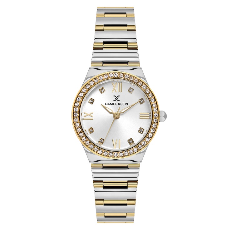 Daniel Klein Premium dameur i tofarget stål med sølvfarget skive, lenke, 3 ATM 28mm