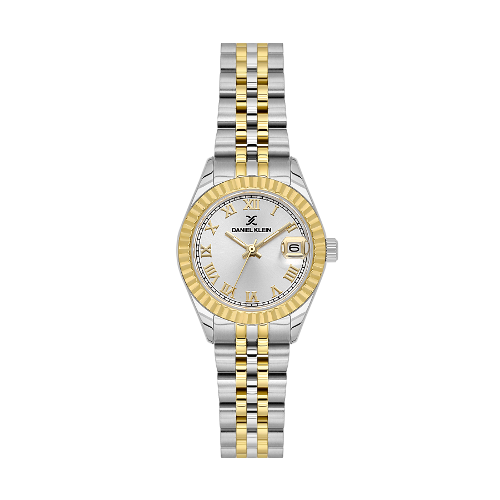 Daniel Klein Premium dameur i tofarget stål med sølvfarget skive og romertall 3 ATM 28mm