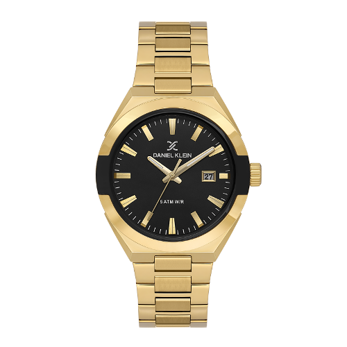 Daniel Klein Premium herreur i forgylt stål med svart skive og lenke 5 ATM 42mm