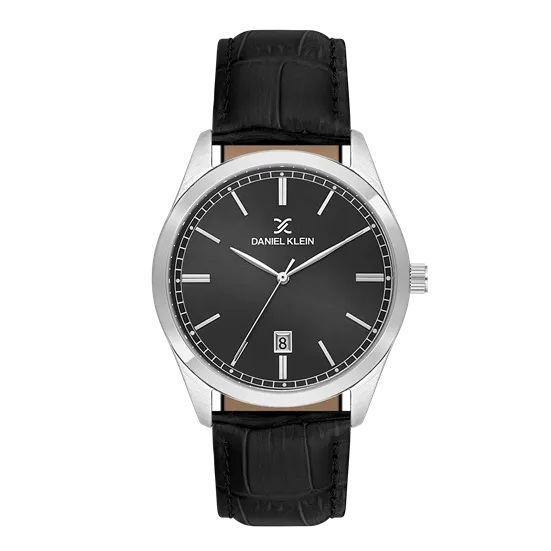 Daniel Klein Premium herreur i stål med svart skive & svart skinn reim 5 ATM 42mm