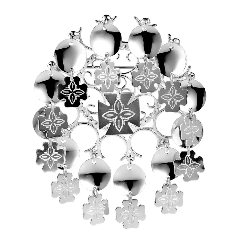 Espeland Rogaland sølje med graverte heng hvitt sølv