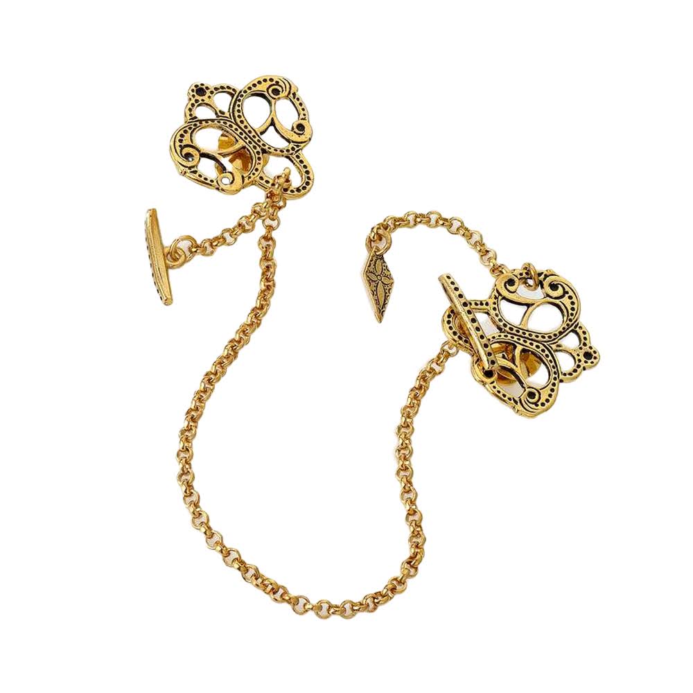 Sjalhekte i forgylt sølv med kjede til Romerikebunad.