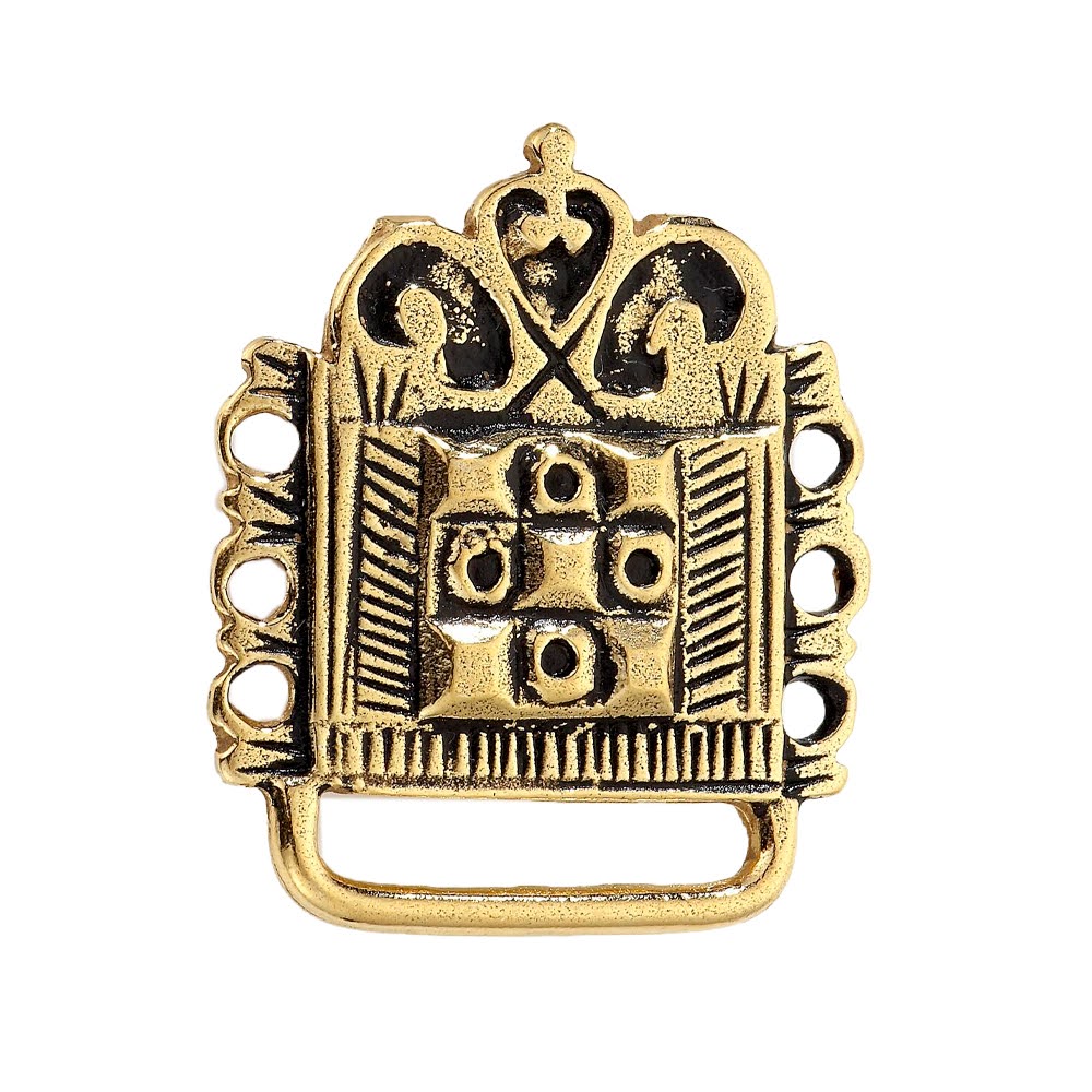 Veskestøl i forgylt sølv med lite øsken, til Romerikebunad.