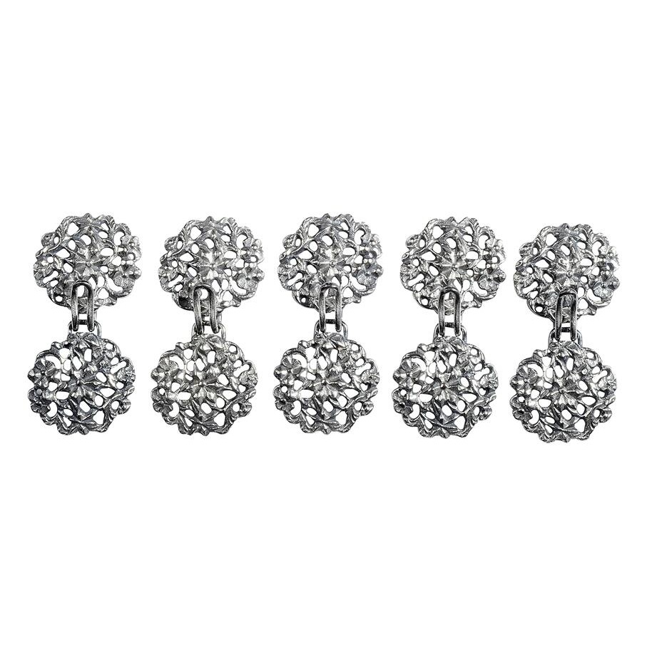 5 par hekter i oksidert sølv, til Vestfoldbunad.