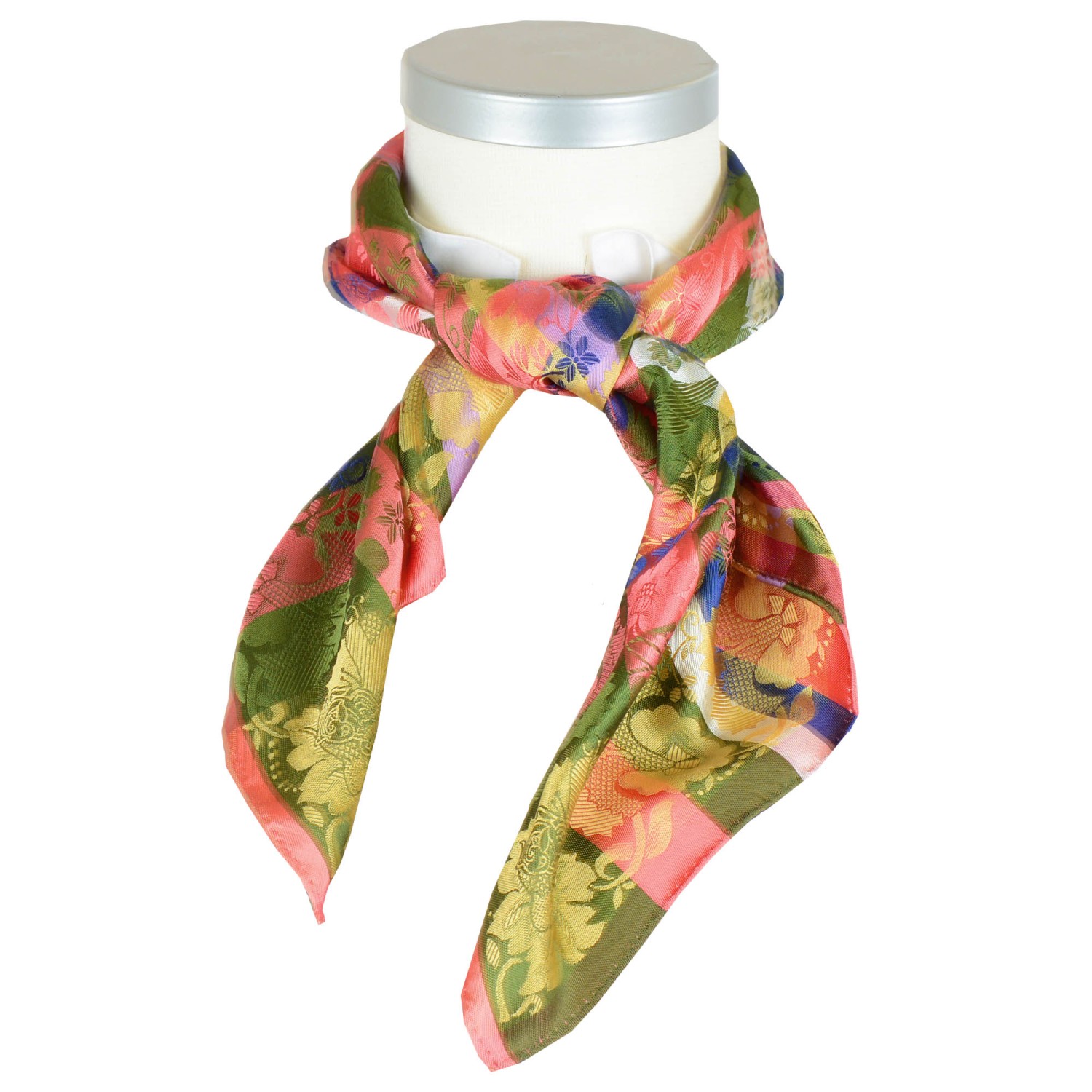 Estelle silkeskjerf grønn, gull, lysrød
