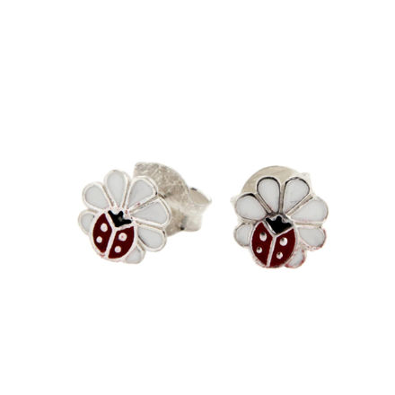 Skjønne øredobber i forgylt sølv, med bie i gul, hvitt og sort.