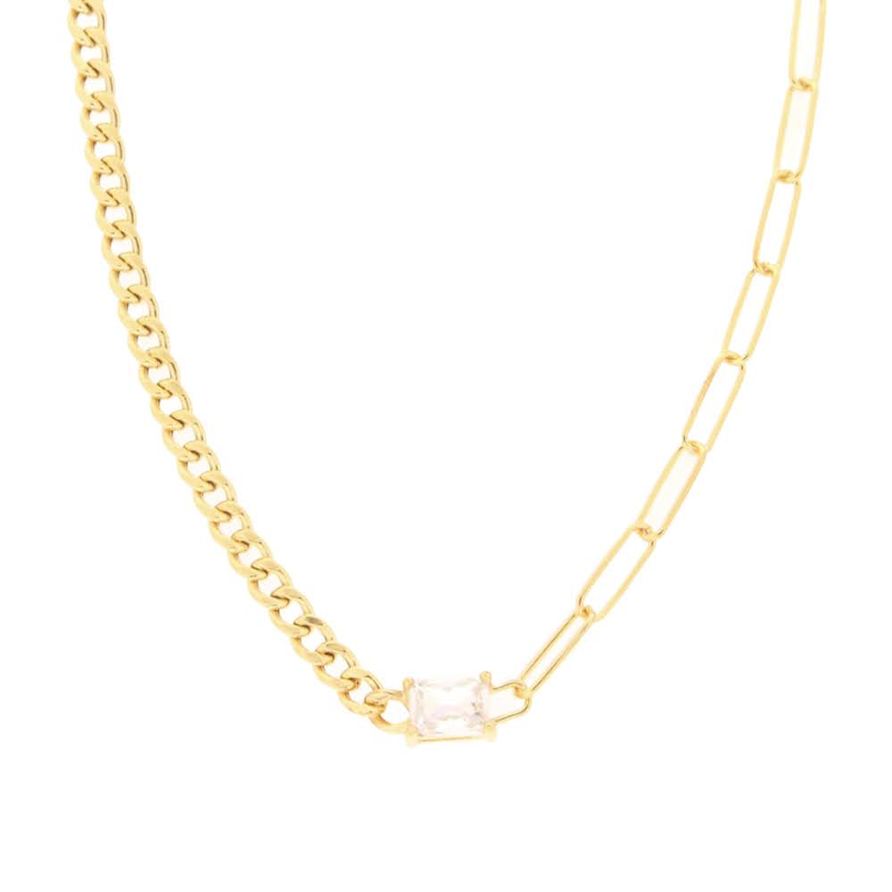 Forgyllt sølv halssmykke panzer & lange ledd 45+5cm blank sten 5x7mm
