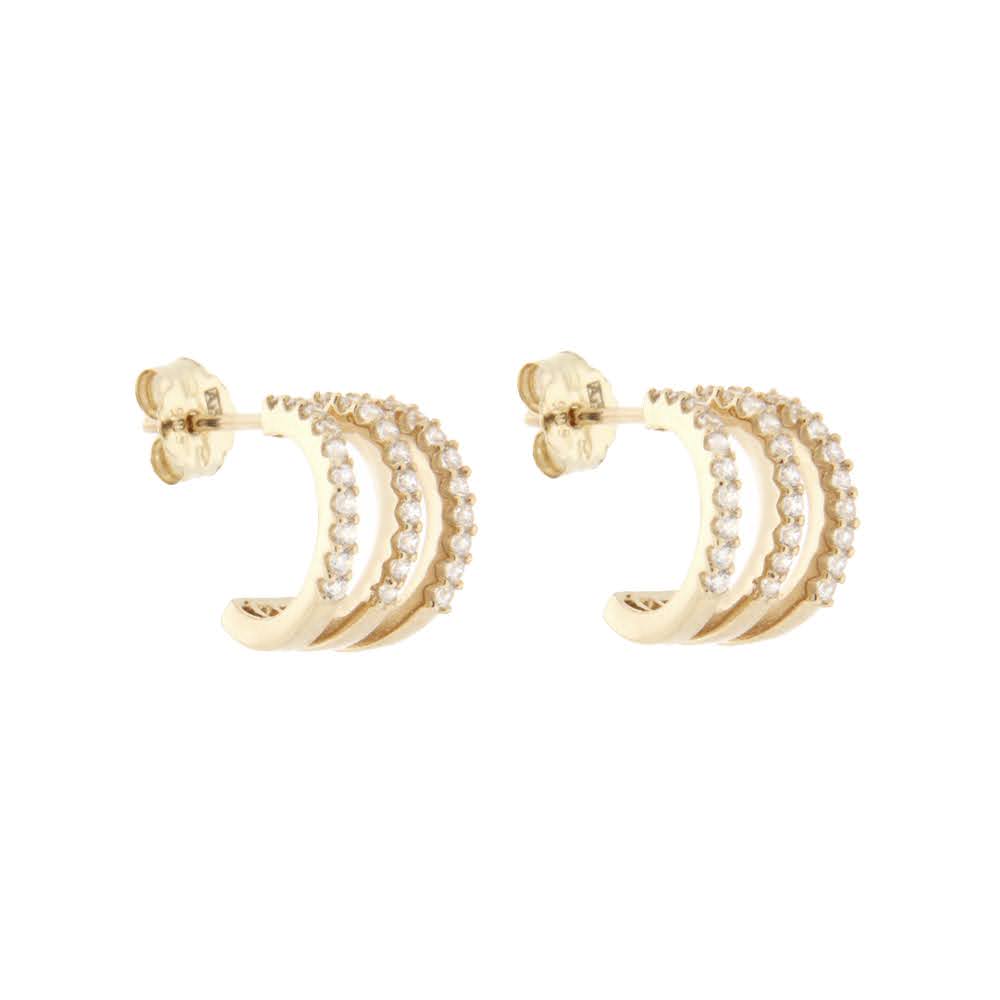 Trendy øreringer i forgylt sølv, med blanke zirconer. Øreringene består av tre rader, som gir en nydelig effekt.