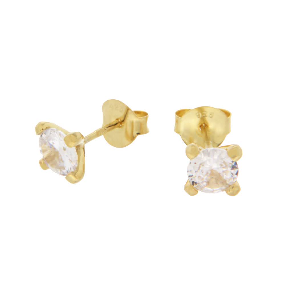 Klassiske øredobber i forgylt sølv, med blanke cubic zirconia. Størrelse på steinene er 6mm.