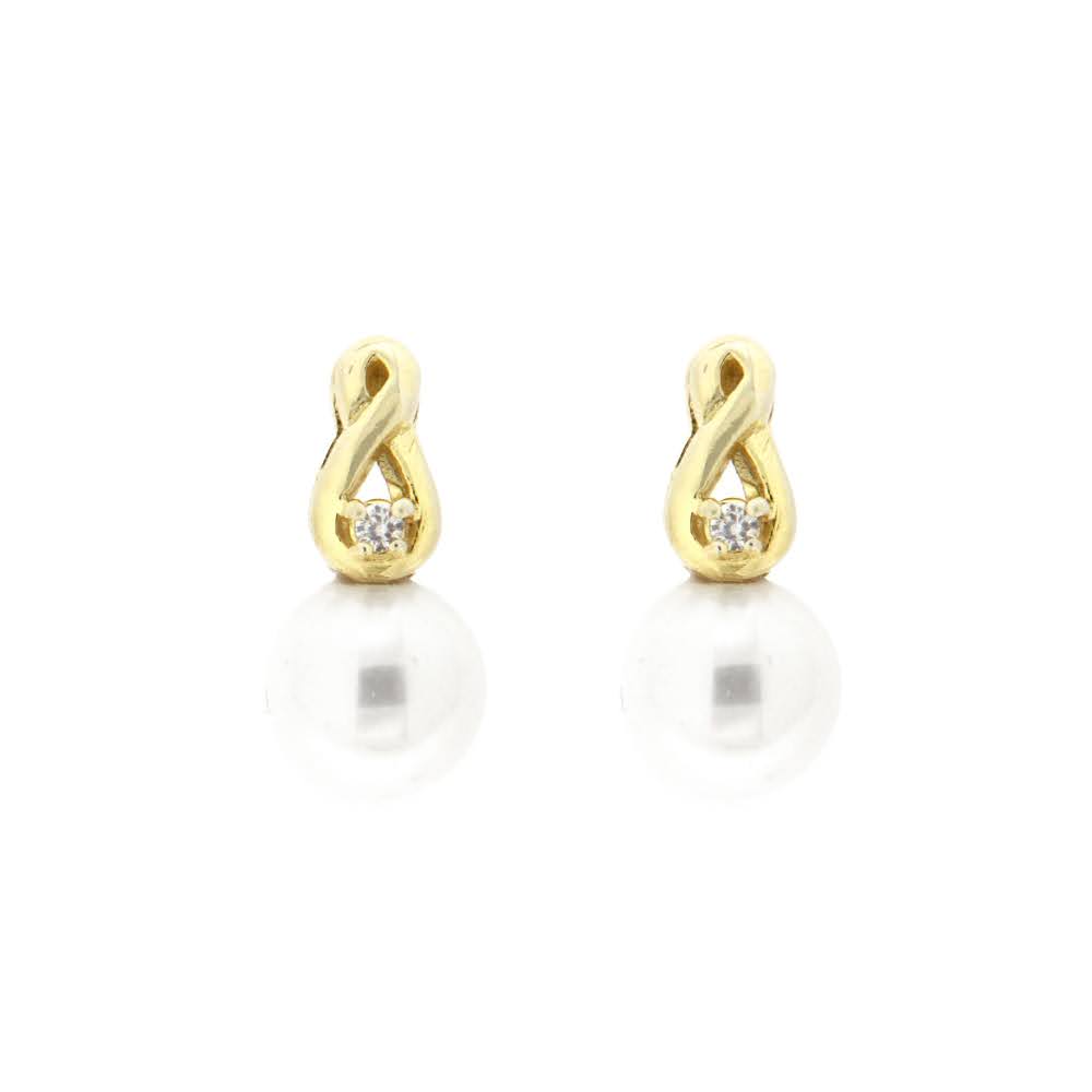 Forgylt sølv øredobber med 8mm hvit perle og liten blank zircon