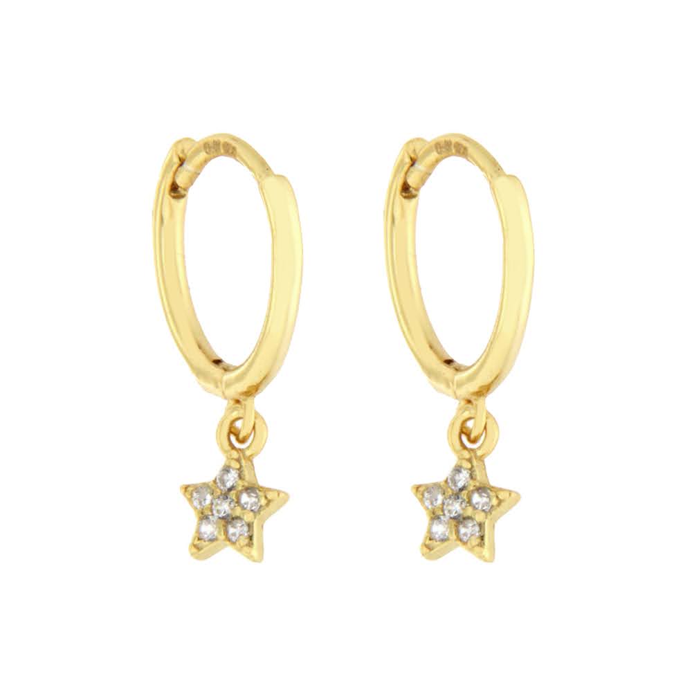 Forgylt sølv øreringer CAIA 12mm med stjerneheng og Cubic Zirconia
