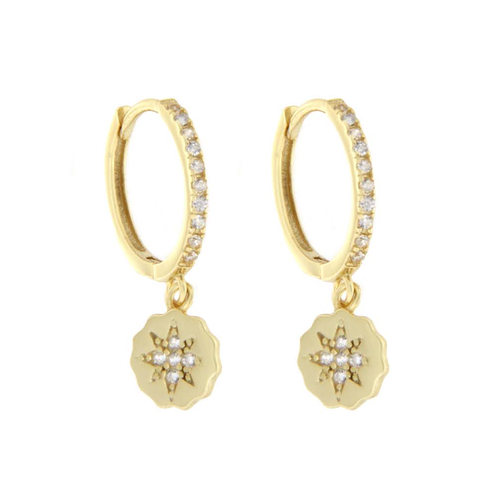 Forgylt sølv øreringer CAIA 13mm rundt heng & blanke Cubic Zirconia