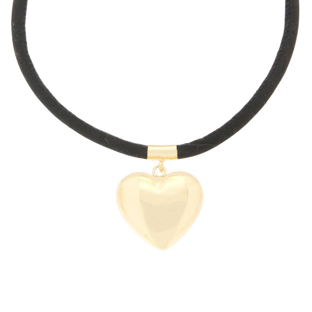 Forgylt sølv anheng hjerte med sort reim 41+5cm