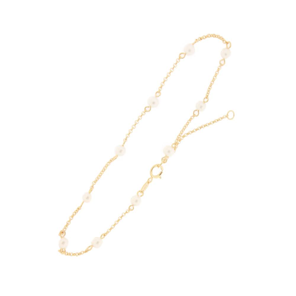 Forgylt sølv ankelkjede med hvite perler, lengde 22+3,5cm