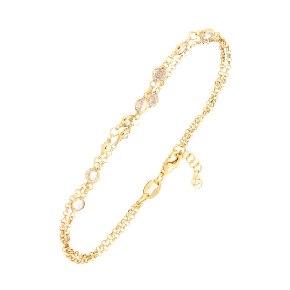 Forgylt sølv armlenke 2-radig med runde zirconer 17+2cm
