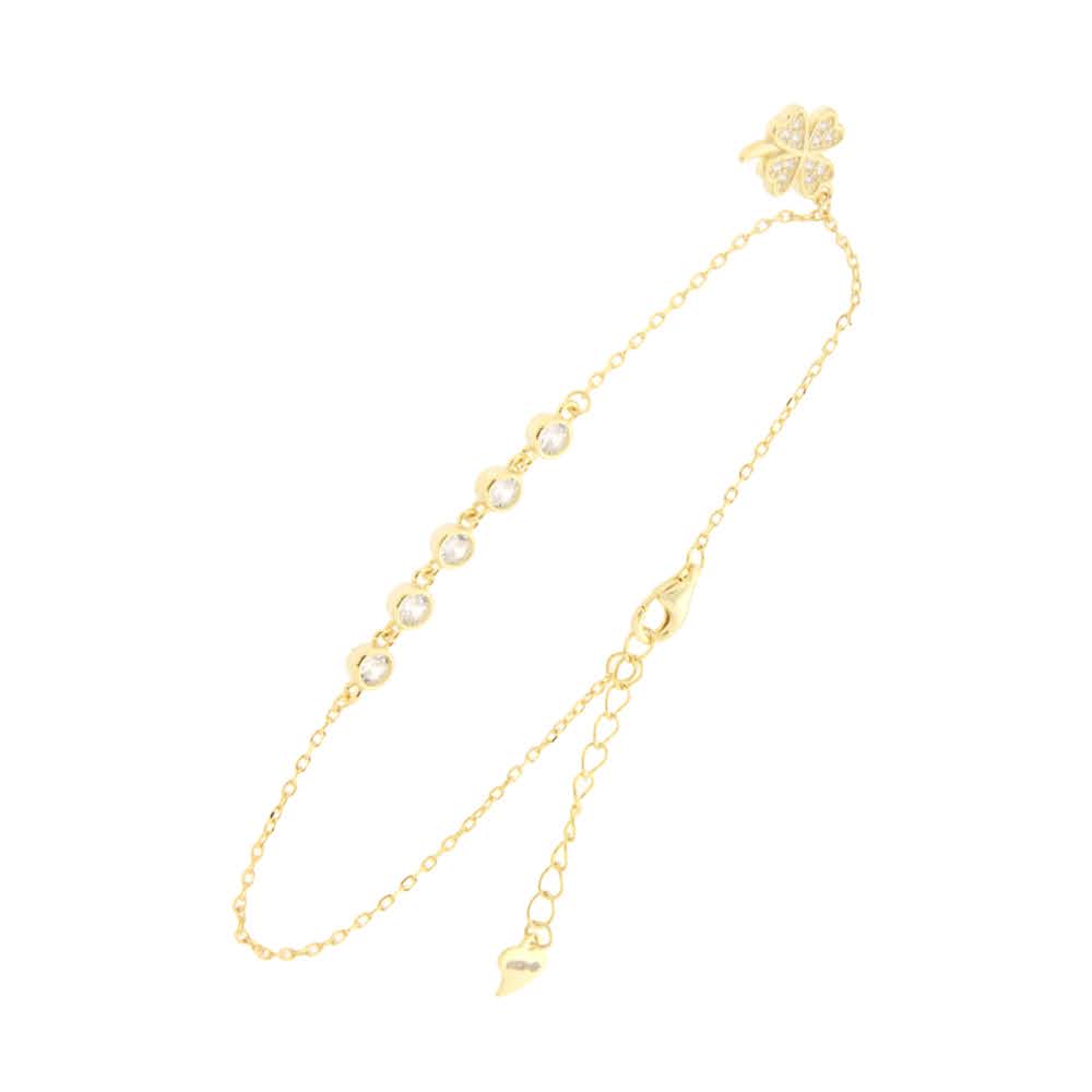 Forgylt sølv armlenke firkløver og zirconer 17+3cm